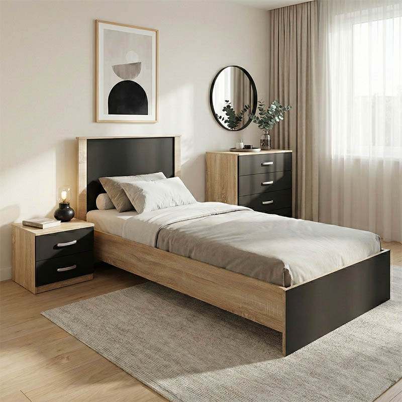 Athos Sonoma Charcoal Bedroom Set with Bed 90x190cm Set of 3pcs