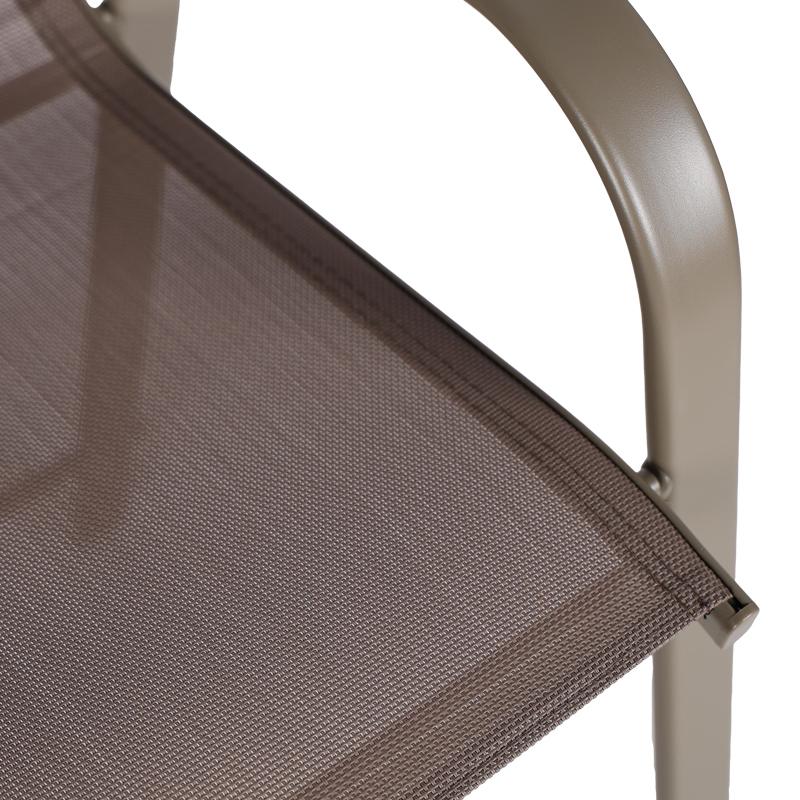 - Main body made of premium-quality textilene. Textilene is a highly durable fabric resistant to sunlight and humidity, while also allowing the skin to “breathe,” ensuring seating comfort.