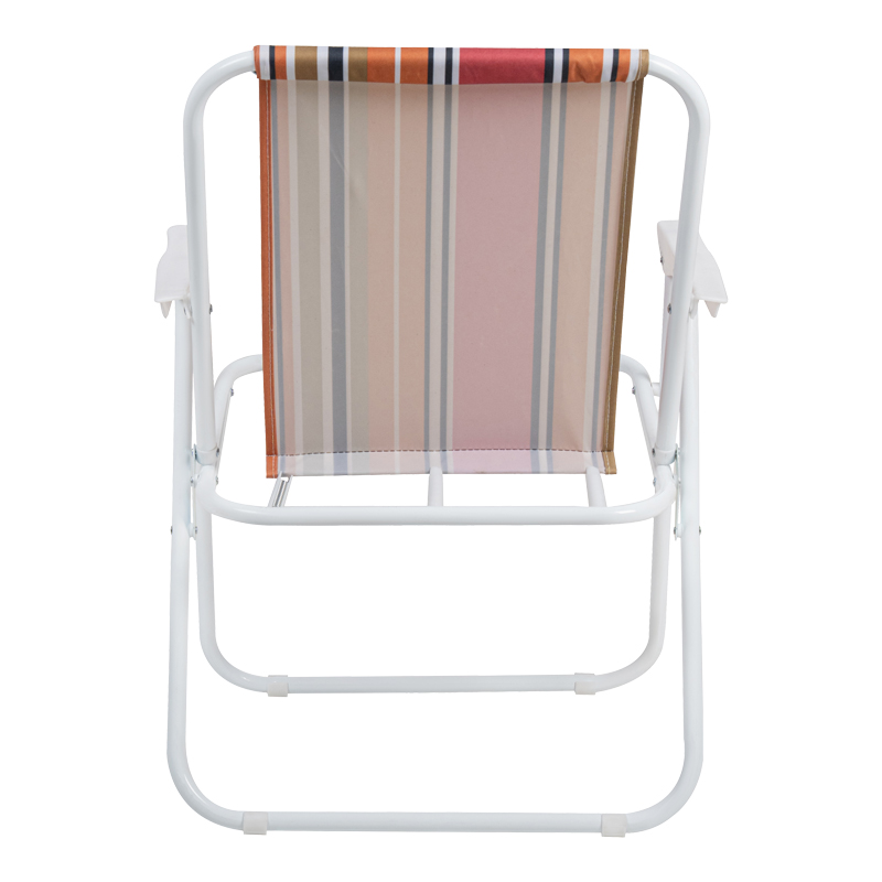 Beach-camping chair Jette pink striped fabric-white metal frame 53x56x73cm