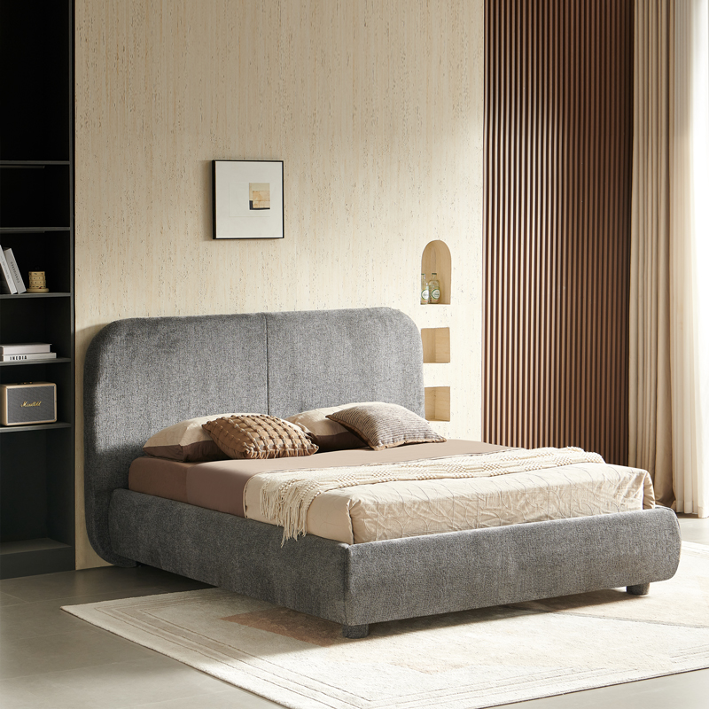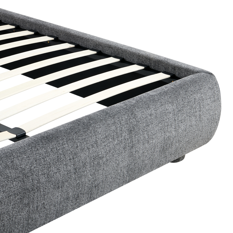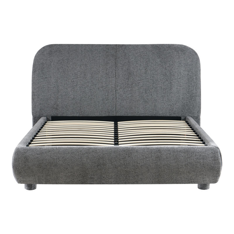 Supported by plywood wooden legs upholstered with fabric in the same color as the bed.