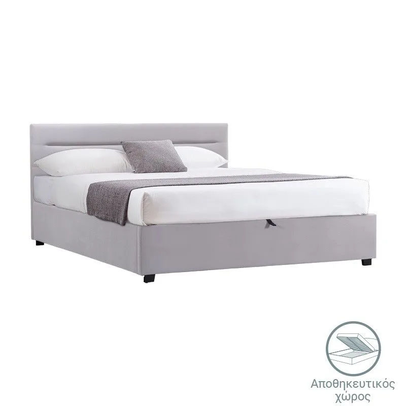 Bed with mattress and storage space Molito-Dreamer velvet grey 150x200cm