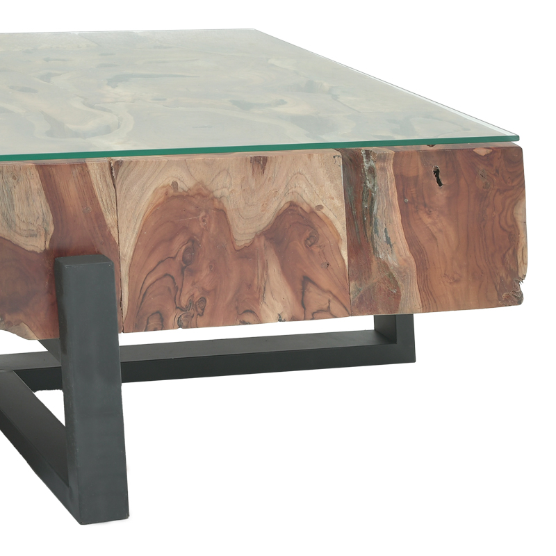 Borth coffee table Inart teak wood in natural color 135x90x40cm