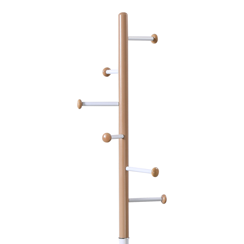 Add a touch of contemporary style and organization to your space with this elegant floor-standing coat rack. Its modern two-tone design, combining the warmth of natural wood with the elegance of white, makes it a subtle yet eye-catching decorative element for any modern home or office.