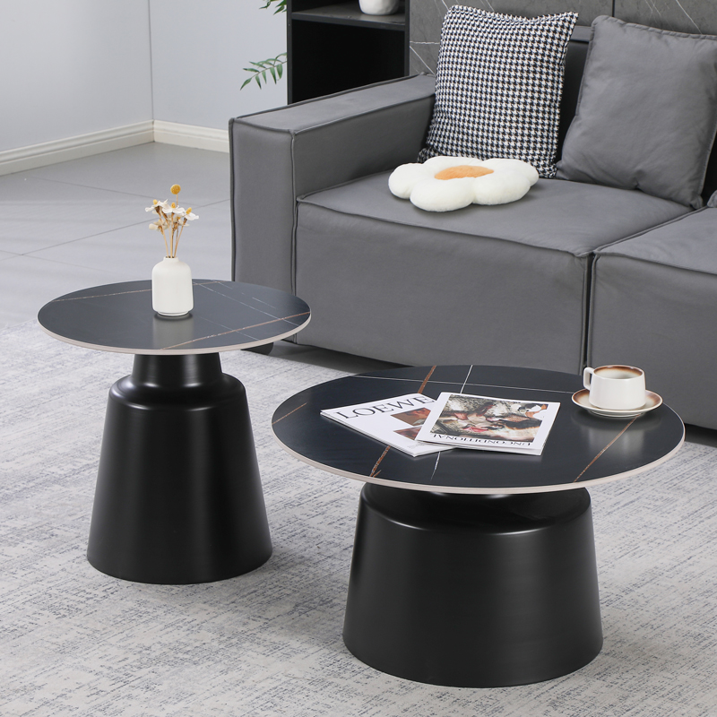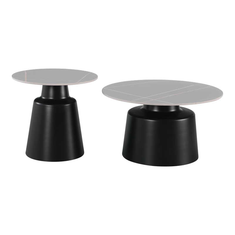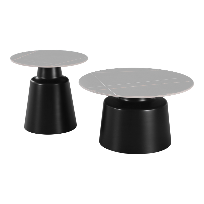 Coffee tables Dualis set of 2 pieces black metal-sintered stone in grey marble look color