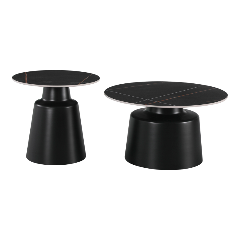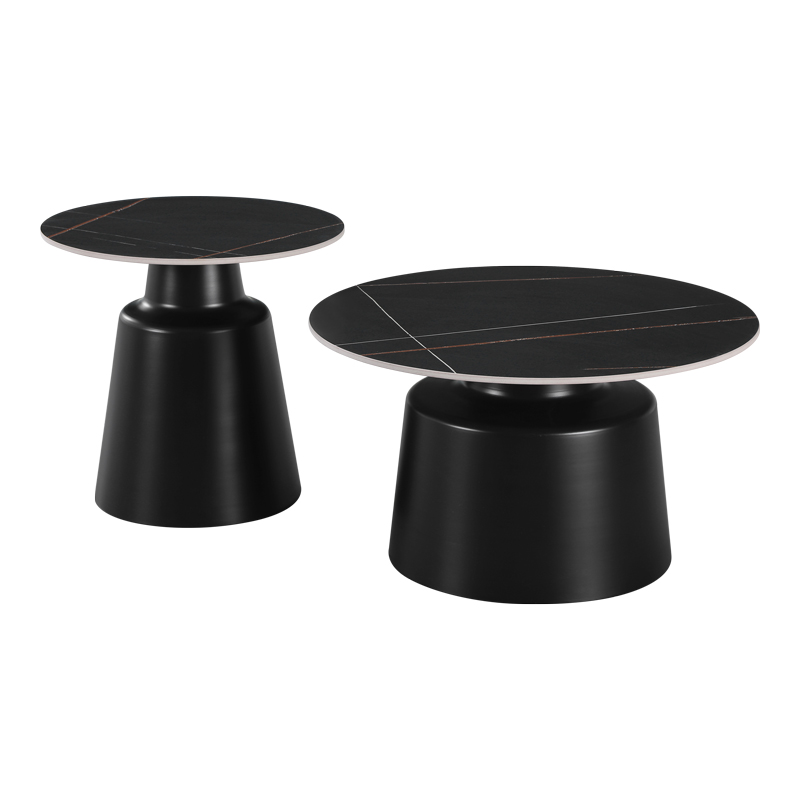 Coffee tables Dualis set of 2 pieces metal-sintered stone in black marble look