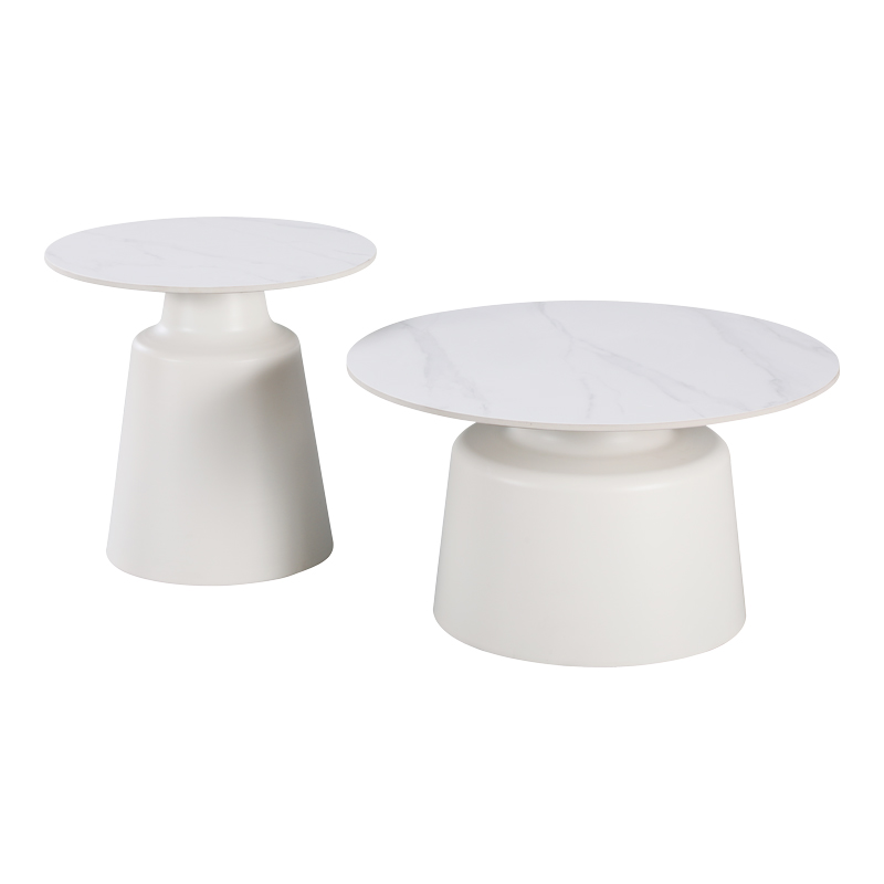 Coffee tables Dualis set of 2 pieces metal-sintered stone in white marble