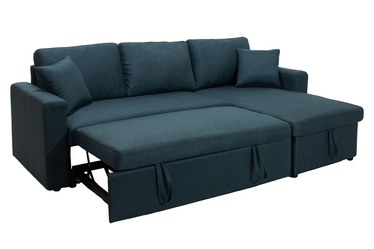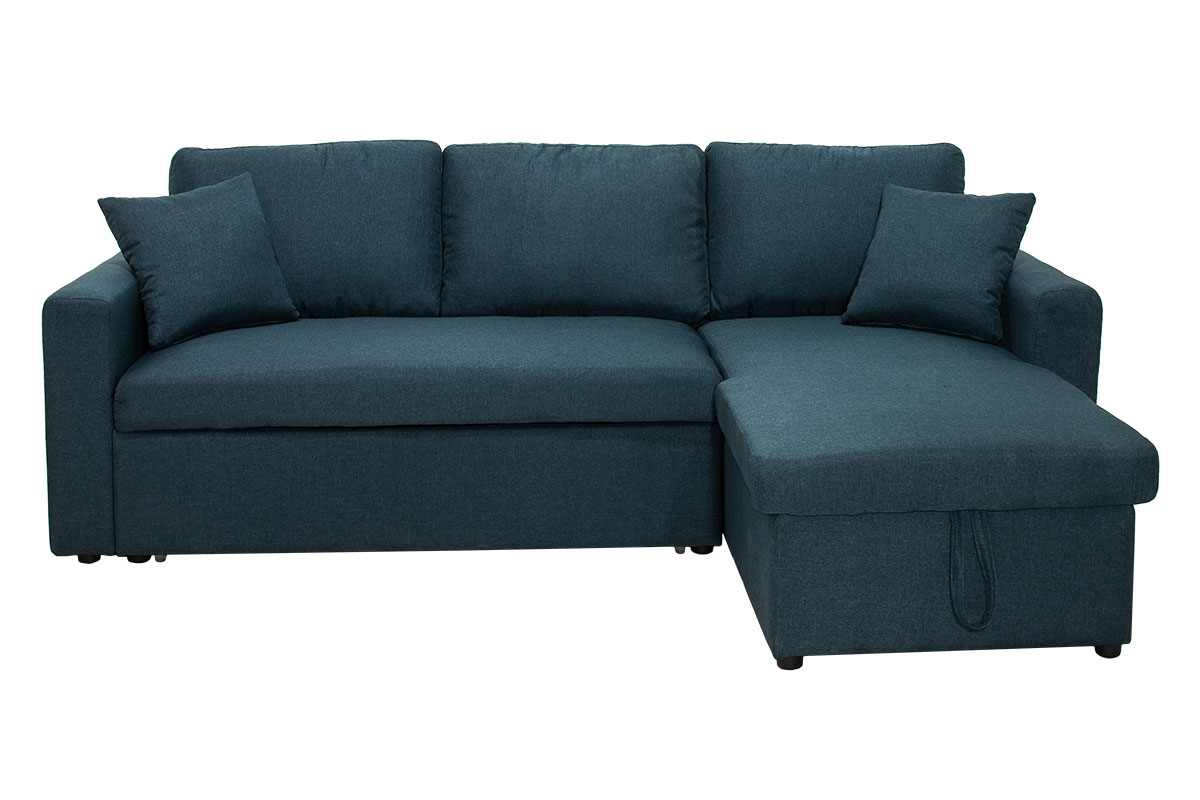 Corner Marvel sofa bed reversible with storage space in blue fabric 220x145x83cm