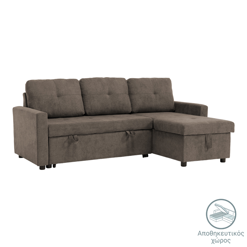 Corner reversible sofa bed Napora with storage space in grey beige fabric 214×83/138x90cm