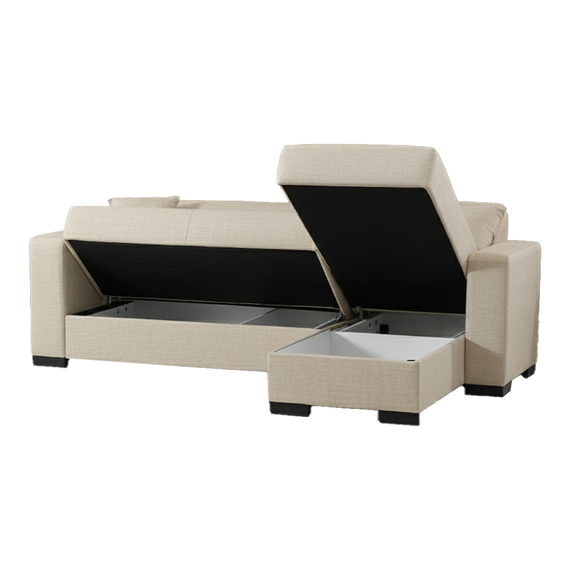 Corner sofa bed reversible Dumma cream fabric 226x148x86cm