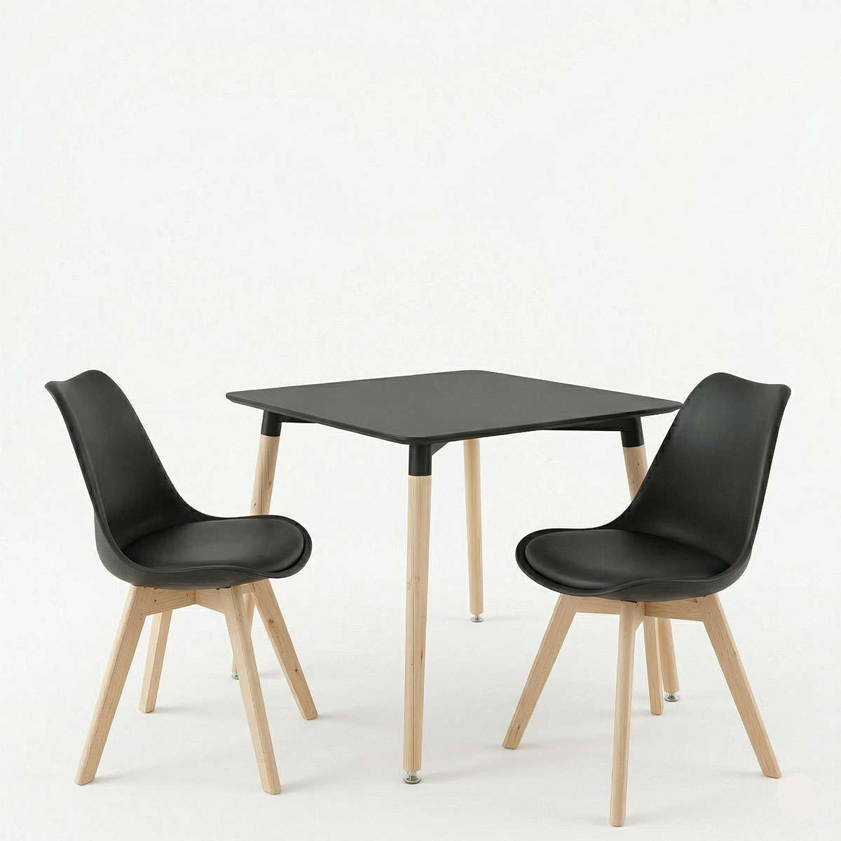 Dining Room with Gaston Chairs and Natali Table black 80x80x76cm Set of 3pcs