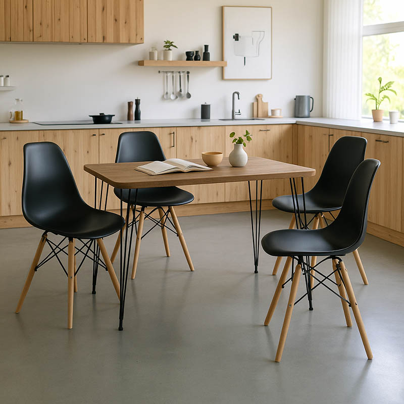Dining Room with Julita Chairs black and Polkan Oak Table 120x60x73cm Set of 5pcs