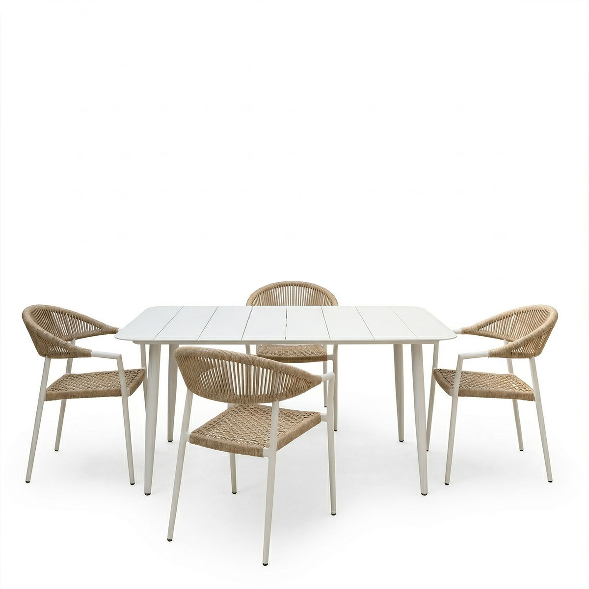 Dining set Ammos Vista set of 5 peices white aluminum frame with PE rope in natural shade 150x80x72cm