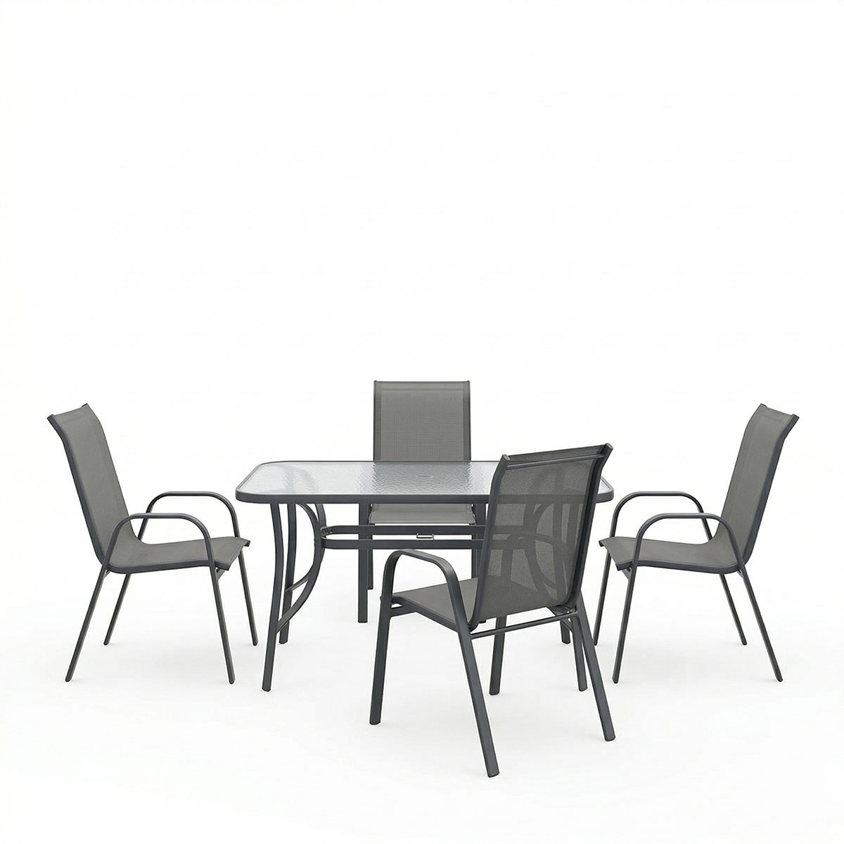 Dining table Ensure Calan set of 5 pieces anthracite metal with glass 120x70x70cm