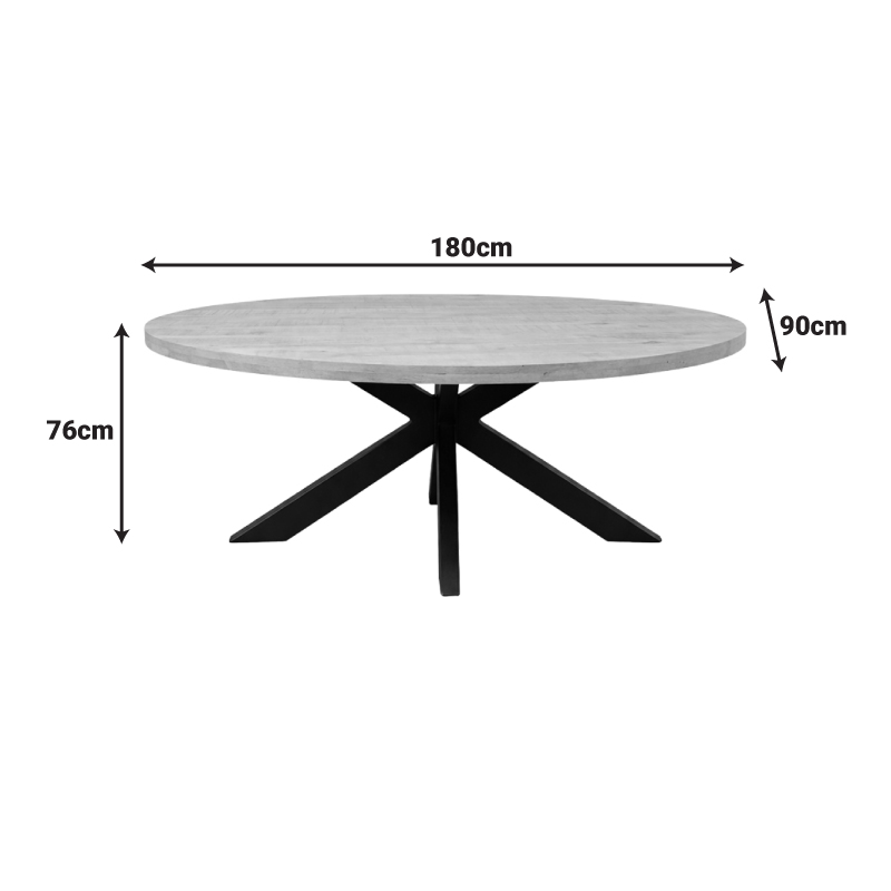 Dining table Jenma solid mango wood in natural color-black metal leg 180x90x76cm