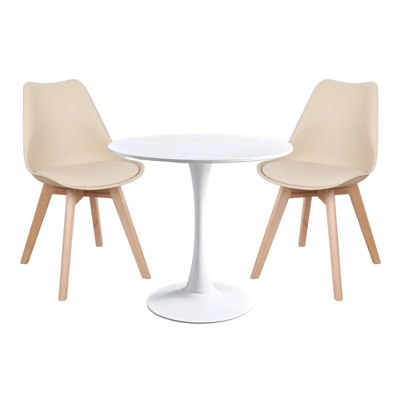 Elijah-Gaston dining table set of 3 pp-pu in taupe-white color with natural legs Φ60x74cm