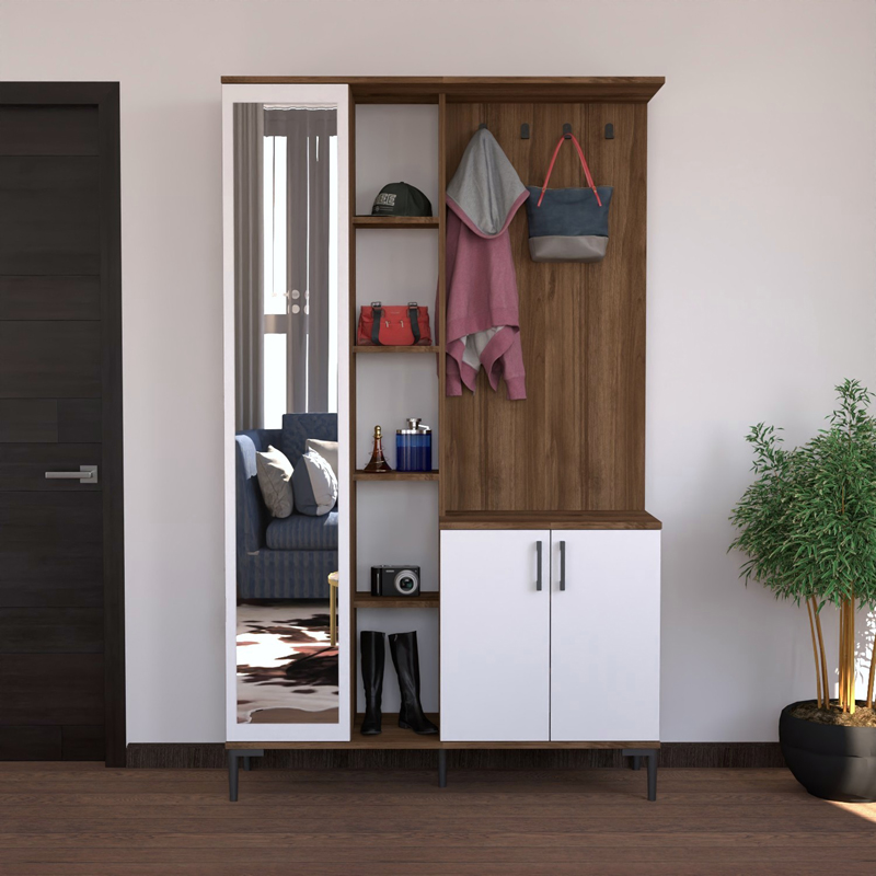 Entrance unit Melena with mirror-hanger white-walnut 120×37.5x199cm