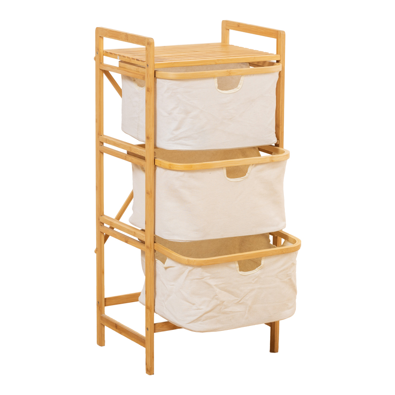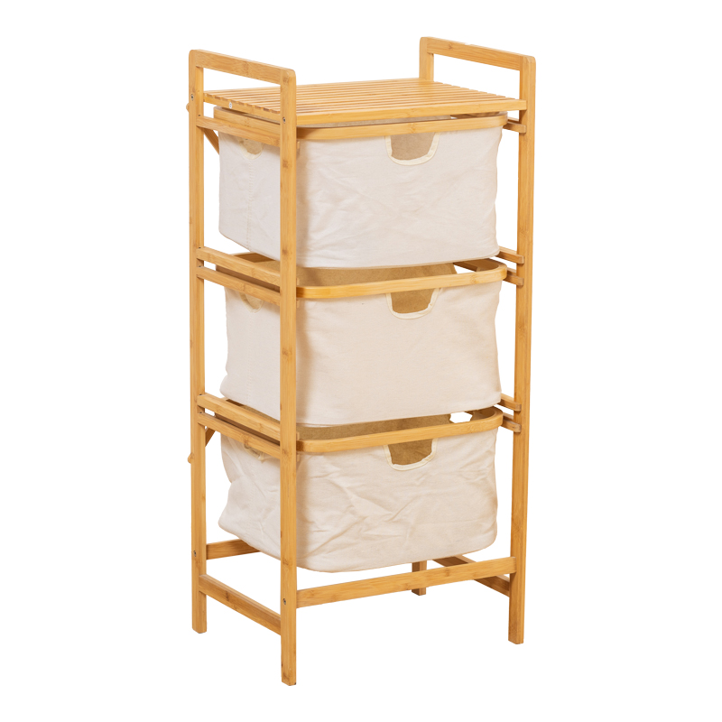 Floor shelf Hanev bamboo-fabric in natural-beige color 44x33x96cm