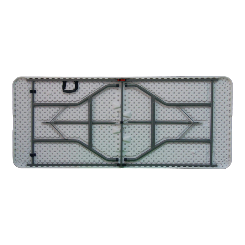 - Frame: Reinforced metal frame Ø22mm – 1mm, electrostatically coated, ending in a foldable leg system in grey. Extremely impact-resistant and highly stable. When not in use, the legs fold under the table, saving space for easy storage and transport.