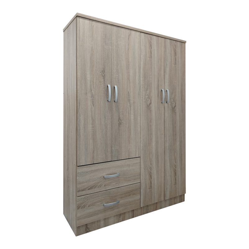 - Features four doors, with an internal hanging rail for clothes and four spacious shelves for organizing garments and accessories.