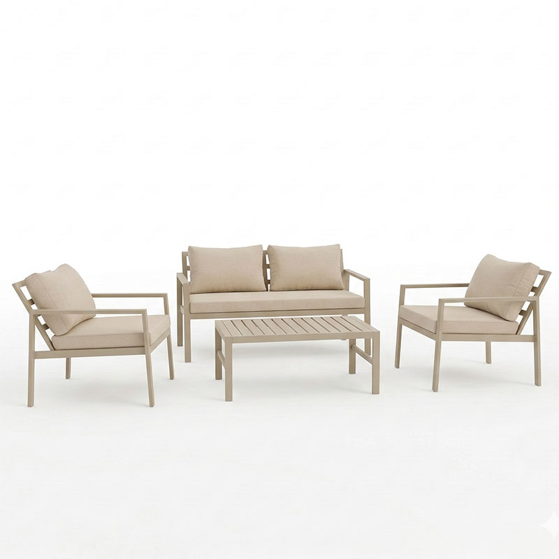 Gardenly lounge set 4pcs aluminum in cappuccino color with beige cushions