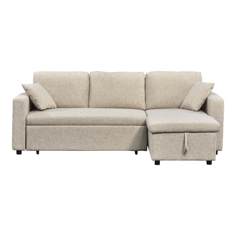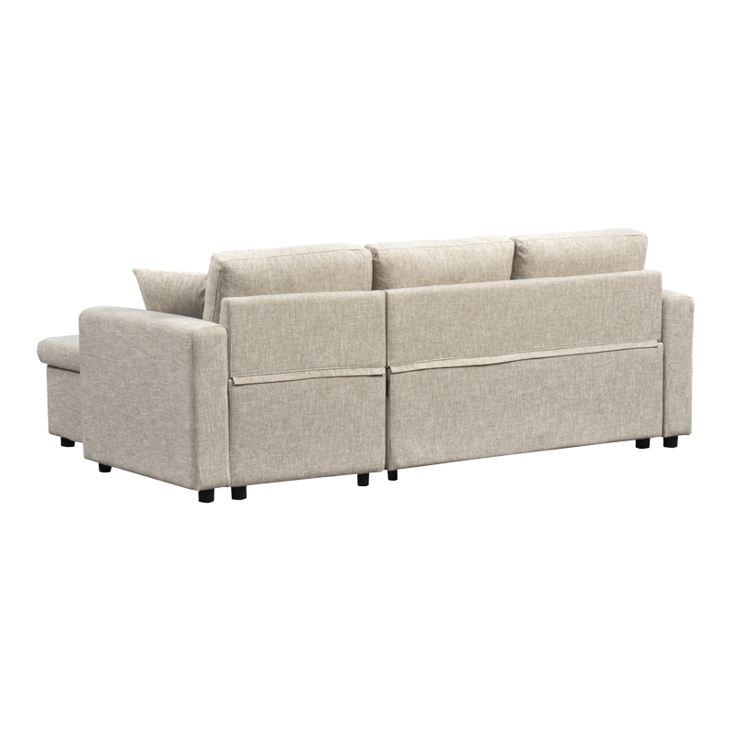 It features comfortable, plush back and seat cushions, while its corner layout is ideal for making the most of every inch of space. The integrated storage space under the chaise longue makes it exceptionally practical for any modern living room. Its compact structure and minimalist aesthetic make it a perfect choice for those seeking comfort, style, and smart storage solutions.