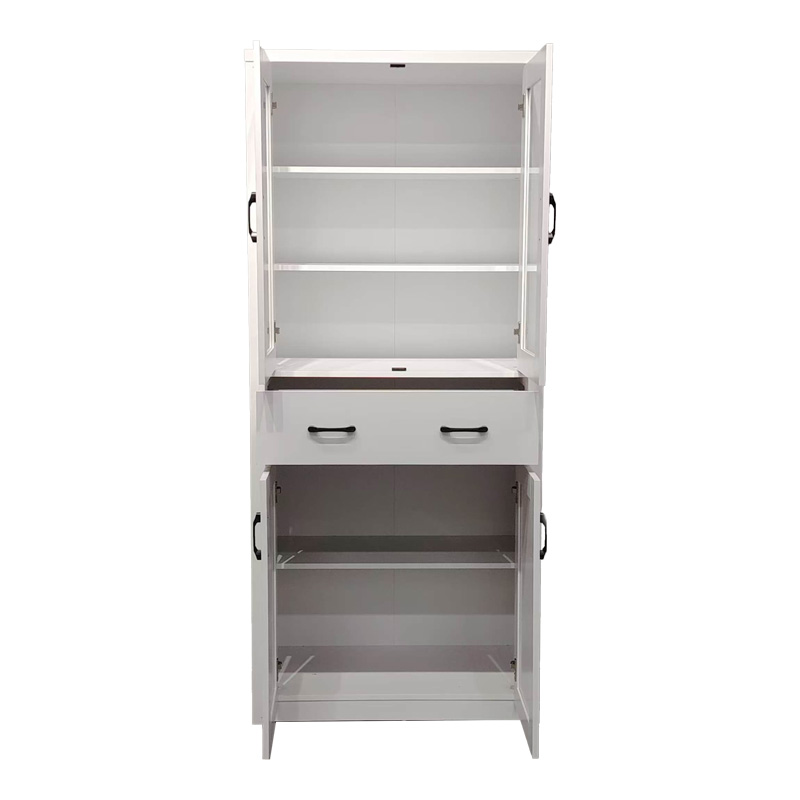- The lower section includes two additional cabinets providing enclosed storage for items you prefer to keep neatly out of sight.