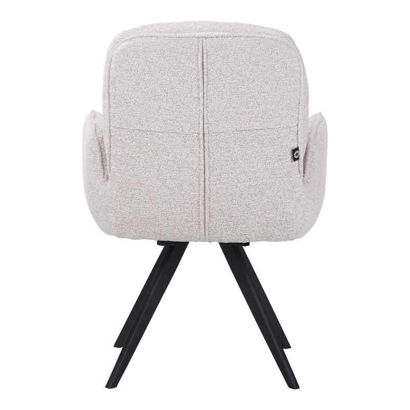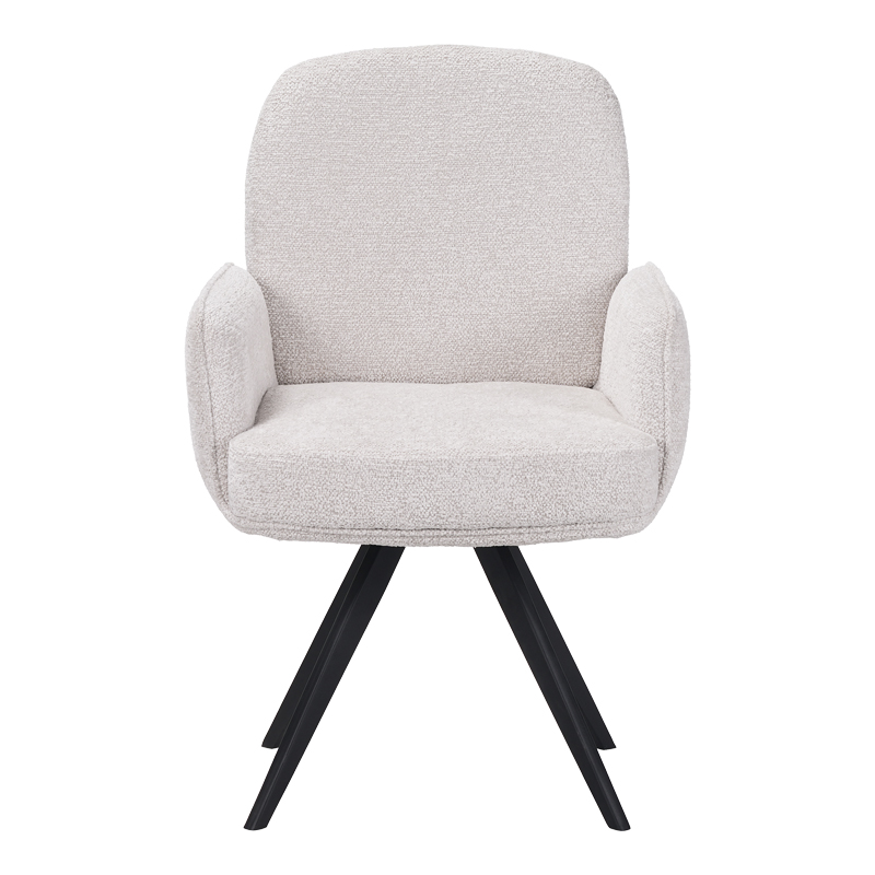 Novo swivel armchair, white bouclé fabric, black metal legs, 65.5x60x90cm