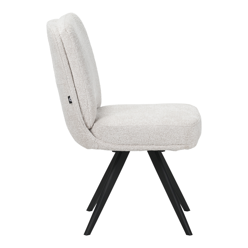 Novo swivel chair, white boucle fabric, black metal legs, 65.5x50x90cm