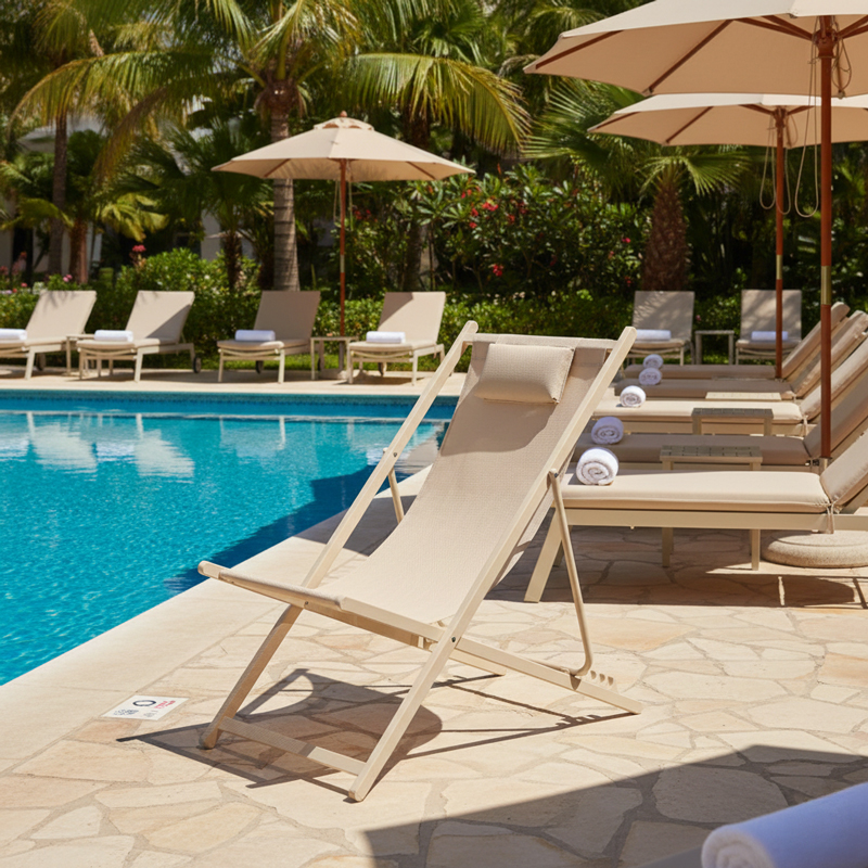 Professional chaise longue Corte beech aluminum champagne textilene fabric