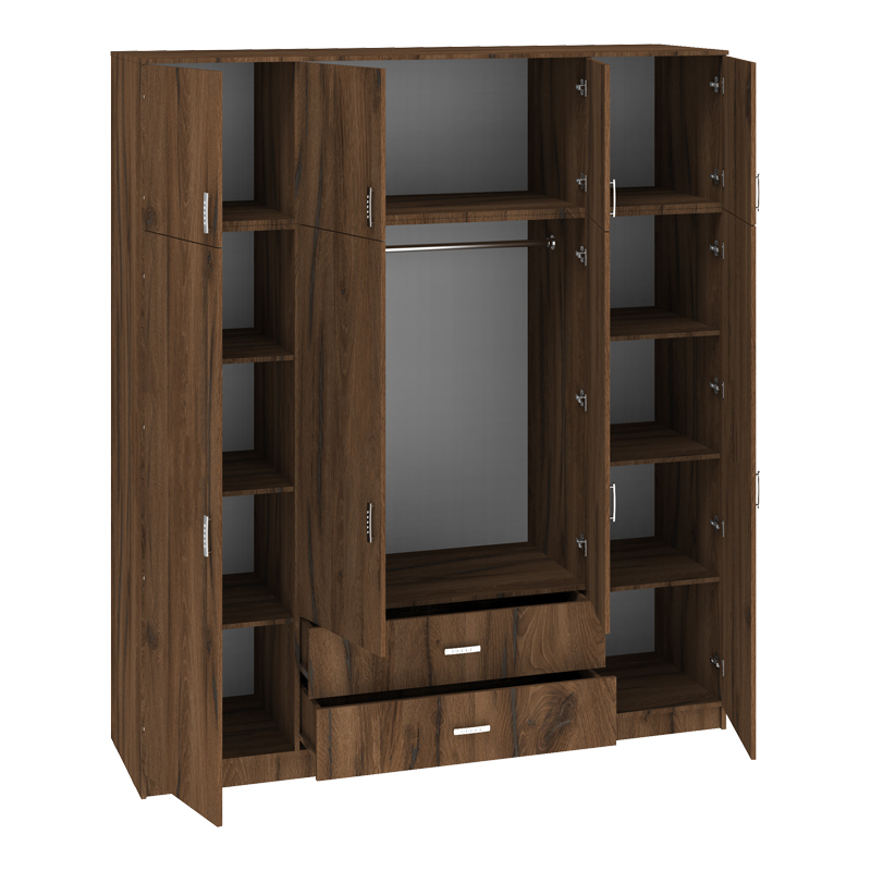 Royal four-leaf wardrobe with drawers walnut-oak 200x58x230cm