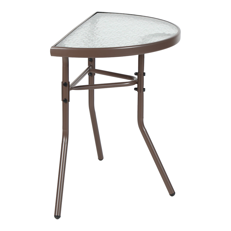 Semi-circled table Bion glass-metal in brown color 70x40x65cm