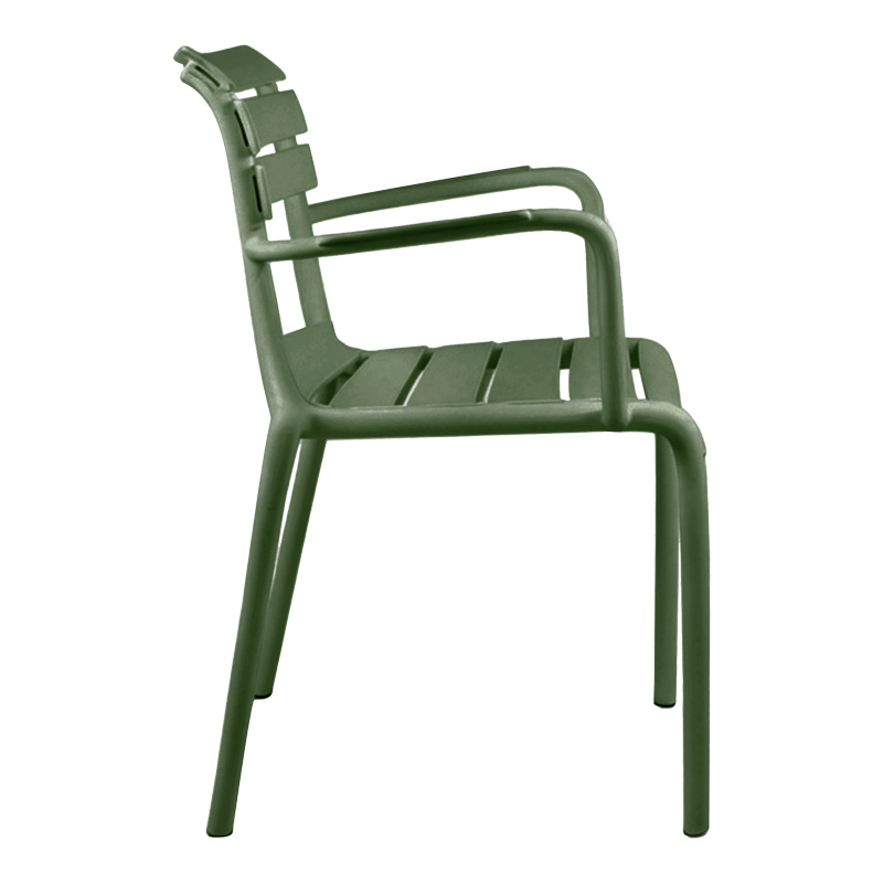 The Almea armchair combines durability with modern design, making your outdoor space the ultimate relaxation spot! Its minimalist design, featuring horizontal slats on the backrest and seat, adds a contemporary touch to your area.