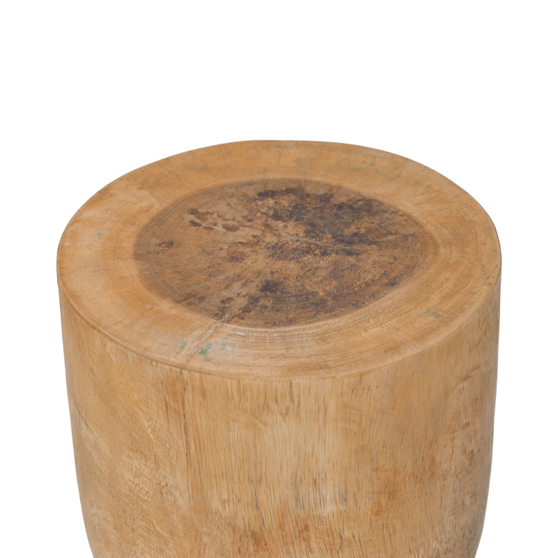 Crafted from a single piece of solid Suar wood, each stool is unique, showcasing its own natural tones and textures. It can also be used as a side table.