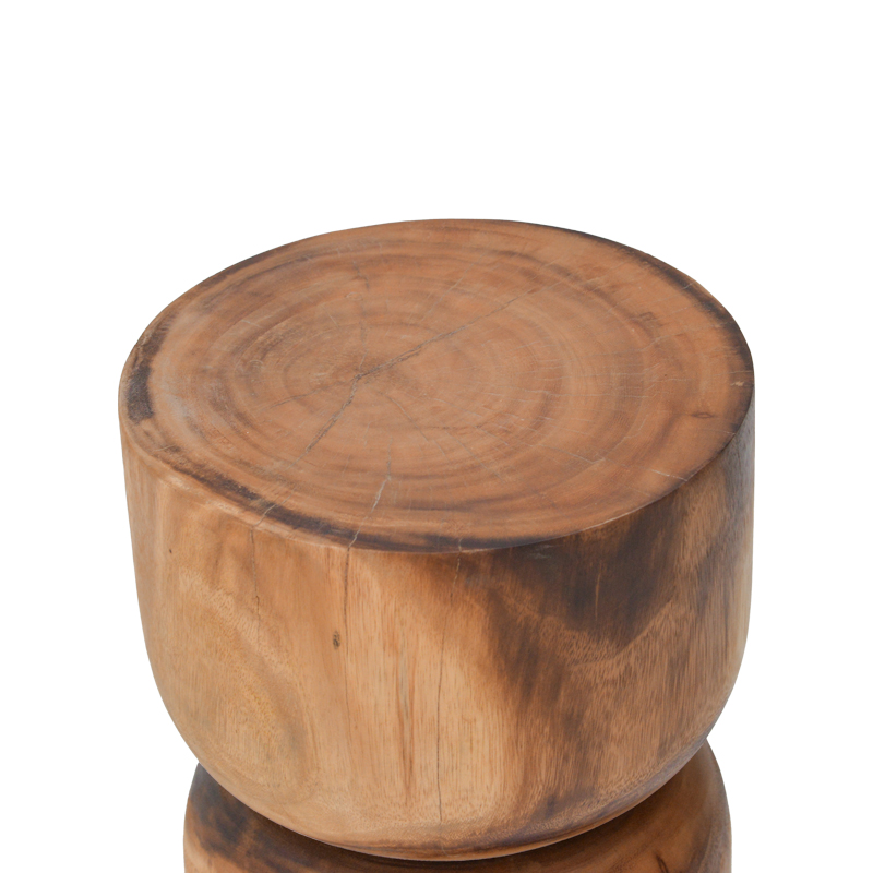Discover the unpretentious, organic beauty of the Lopen stool, a truly unique piece crafted from natural suar wood. Each stool features its own distinctive wood grain patterns and natural imperfections, making your piece one of a kind. Its sturdy construction and warm, earthy tones bring a sense of tranquility to any room. Ideal for the living room, bedroom, or even a covered balcony, it can be used as a comfortable seat, a small side table for your coffee, or a striking decorative element.