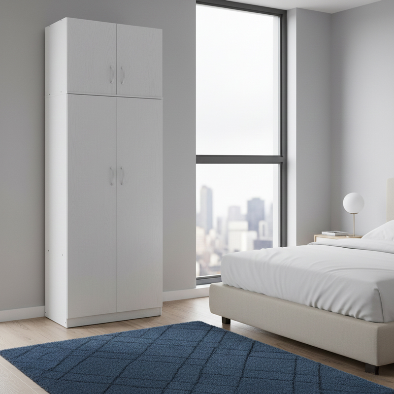 Two-door wardrobe with loft Lego in white color 80x42x240cm