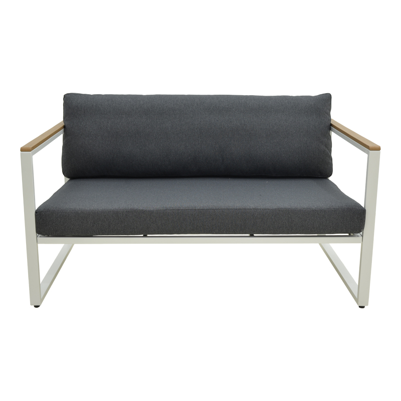 Upgrade your indoor or outdoor space with the Aurelio 2-Seater Sofa. Featuring a sturdy steel frame and sleek, modern lines, it combines style, comfort, and long-lasting durability. The armrests with plywood accents add a natural touch, while the plush cushions ensure a premium seating experience.