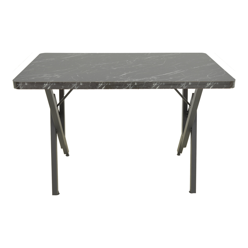 Combining the refined elegance of a marble-effect surface with the bold, geometric aesthetic of black metal, it creates a unique focal point — perfect for everyday dining and entertaining.
