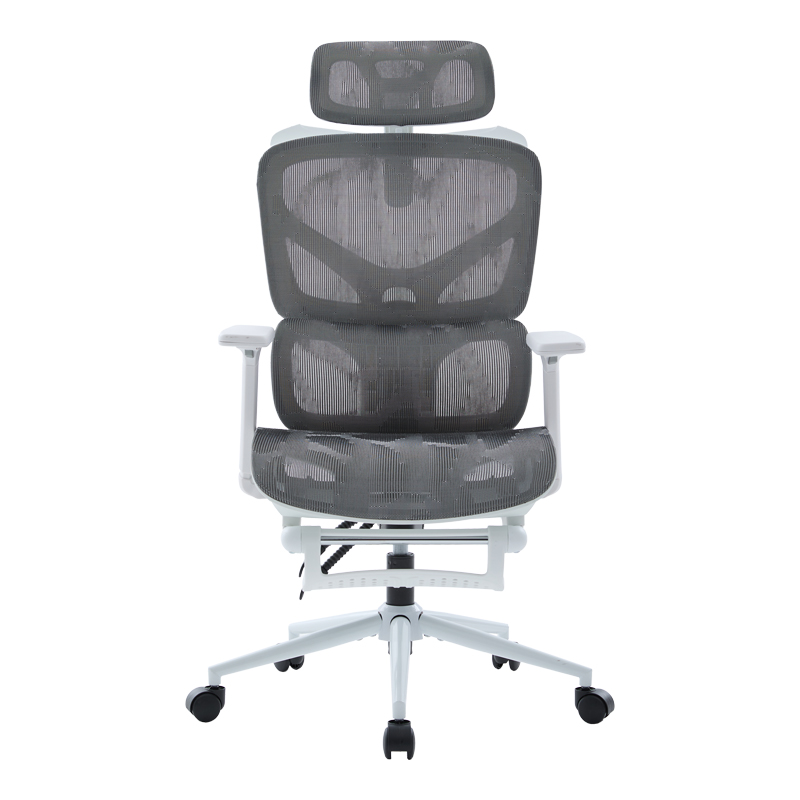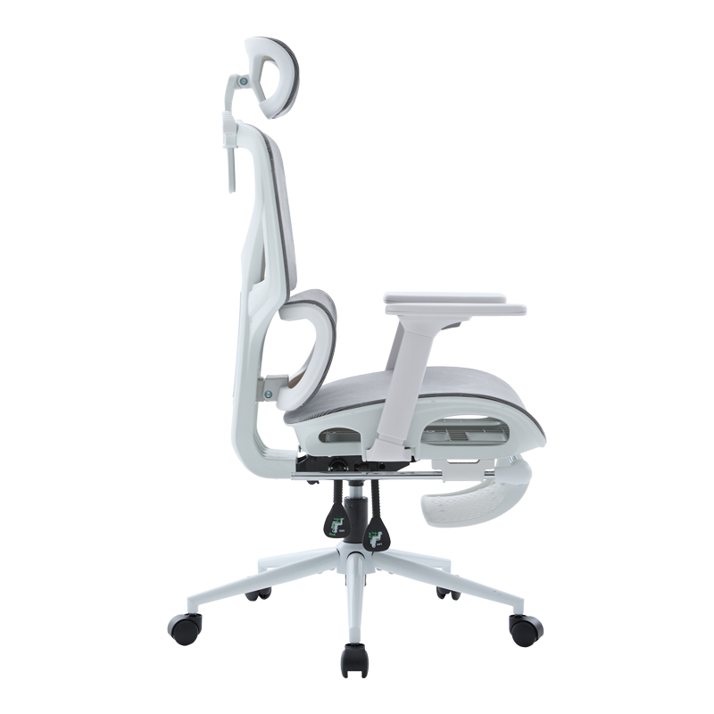 • Materials & Construction: The seat surface is made of reinforced thickening mesh fabric in grey, ensuring excellent breathability and durability. The frame is white and made of PP (Polypropylene), while the sturdy 350 mm base is a metal KD (Knock-Down) type, providing stability. The wheels are designed for smooth and silent rolling.