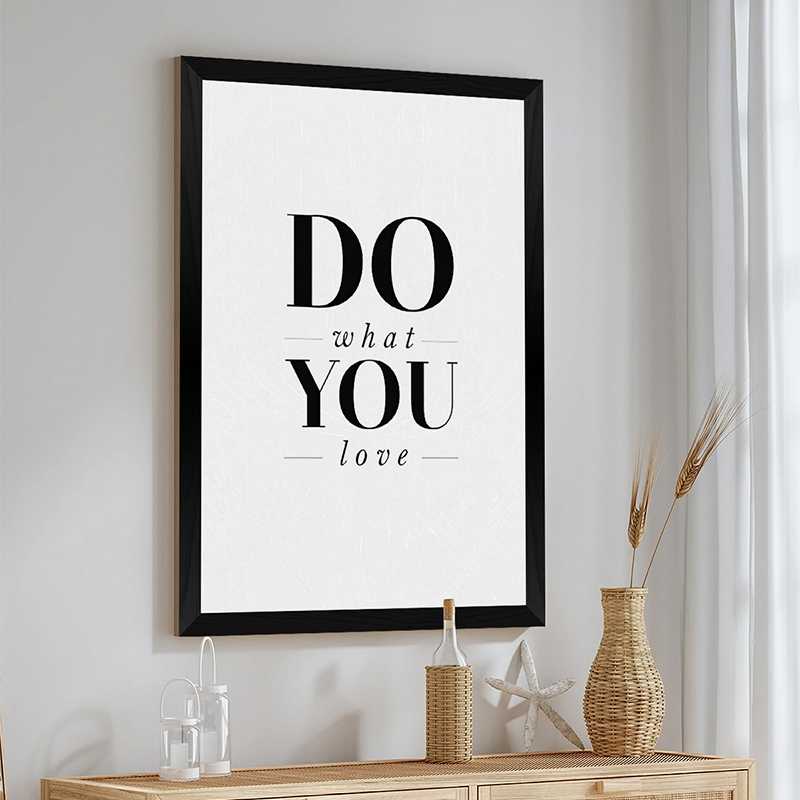 The Venor artwork is the ideal piece for anyone seeking inspiration and a reminder to follow their passions. The message “DO what YOU love” is presented in a dynamic mix of fonts, with the word “YOU” standing out boldly. Its clean black-and-white aesthetic and emphasis on the key word make it perfect for offices, workspaces, or any room that needs an energetic and modern touch.