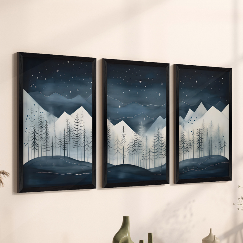 Wall art in frame Wavy triptyque with digital print 33×0.3x48cm