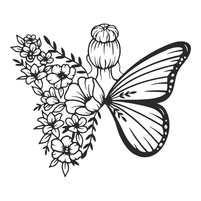 The Terfia decorative piece is an ode to femininity and renewal. A unique artwork where the silhouette of a woman transforms: one side forms a butterfly wing, while the other blossoms into a rich composition of blooming flowers.