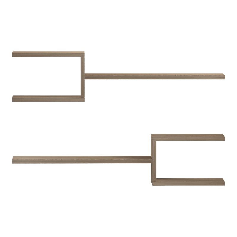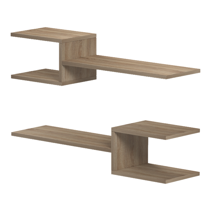 • Modern, geometric design with alternating open and closed sections. The layout allows the shelves to be placed parallel, opposite, or in a stepped arrangement, giving the impression that they “lock” together.