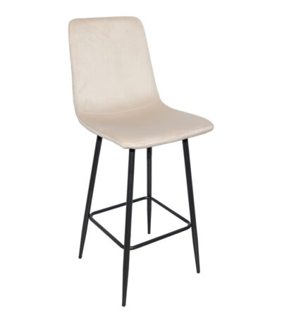 Alkia I bar stool fabric in ecru color – black metal leg 50x56x95cm