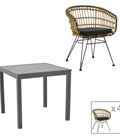 Naoki U dining table set of 5 rattan pe in natural shade and black metal 80x80x78cm