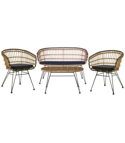 Lounge Naoki set of 4 pcs natural pe rattan-black metal-glass 148x70x72cm