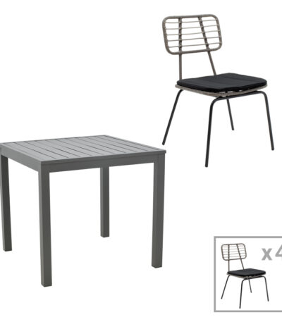 Dining table Naoki – Kliton set of 5 anthracite aluminum and metal in black shade 80x80x74cm
