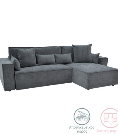 Corner reversible sofa-bed Kerbian dark grey color fabric 273x162x92cm