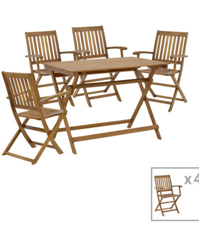Joter-Jaybo dining table set of 5 folding natural solid acacia wood 100x65x72cm