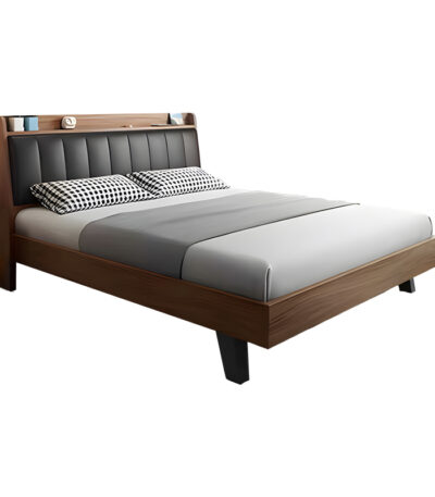 Frankly double bed mdf-pu in walnut-black color 150x200cm