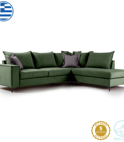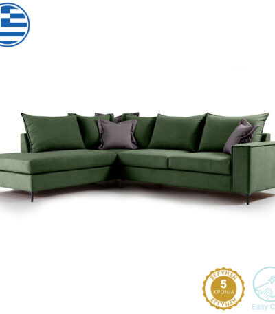 Corner sofa Boston left corner fabric dark green-dark grey 290x235x95cm